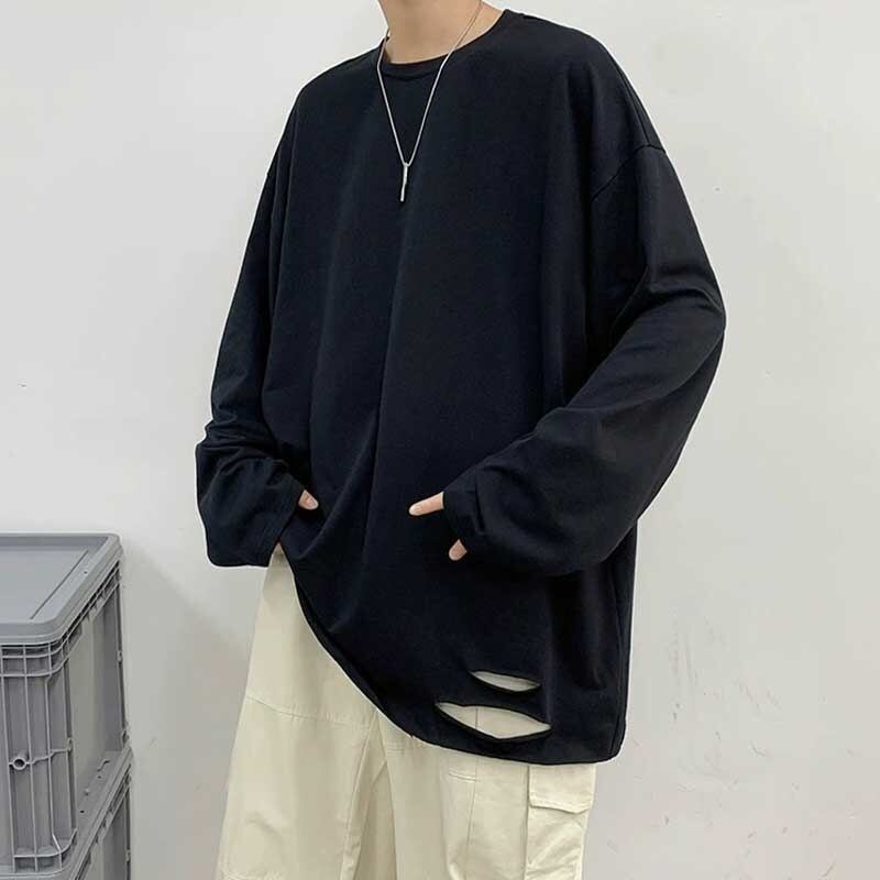 メンズ用トップス・Tシャツ・カジュアル・長袖・気質・原宿風・M~3XL 2色