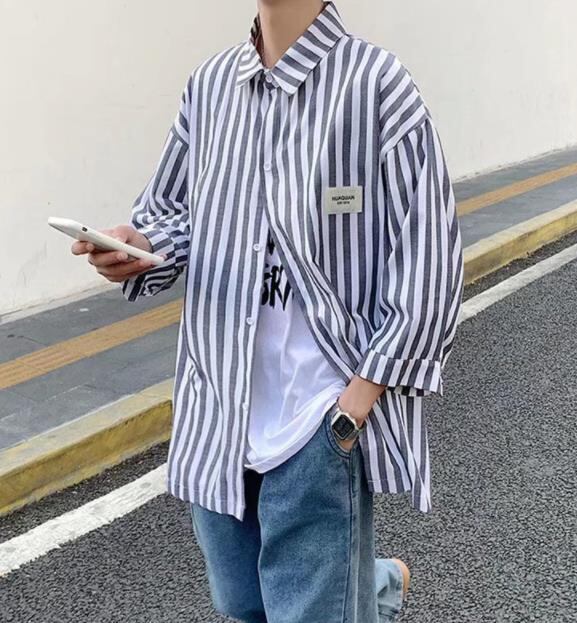 メンズ 男 トップス 半袖 ボーダー柄 シャツ ブラウス コート アウター 2色 M-3XL