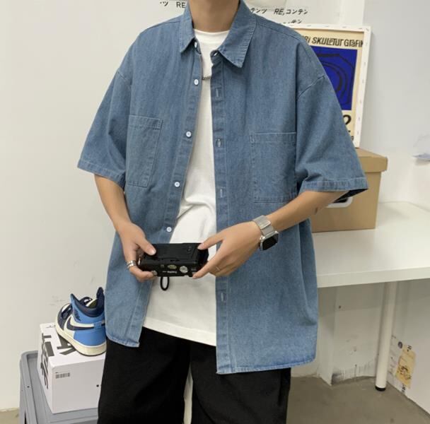 メンズ 男 トップス 半袖 デニム シャツ ブラウス コート アウター 2色 M-2XL