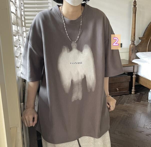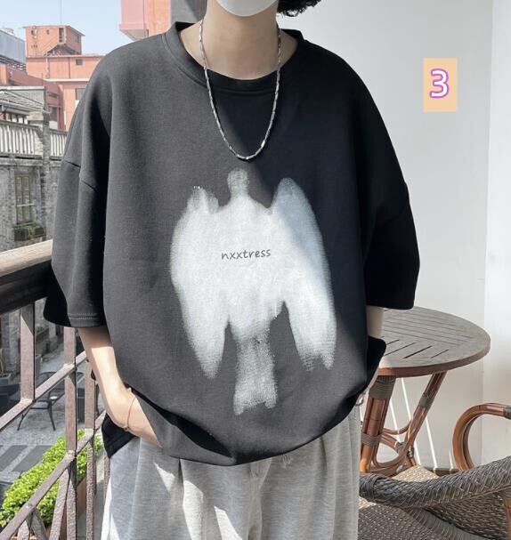 メンズ 男 カジュアル 半袖 丸首 プリント トップス Tシャツ インナー 3色 M-5XL