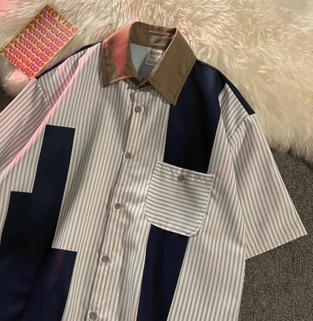 メンズ 男 トップス 半袖 ボーダー柄 シャツ ブラウス コート アウター カーディガン M-2XL